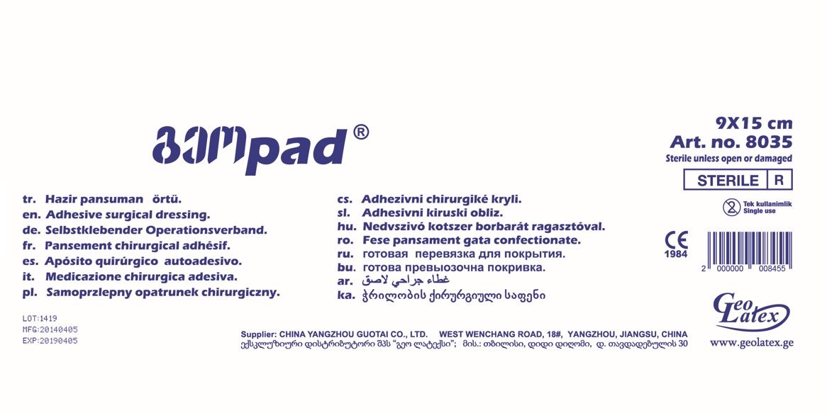 სტერილური ჭრილობის საფენი, ლეიკო. ზომა 9.0X15.0 სმ