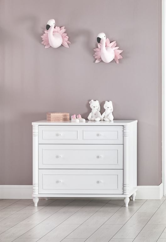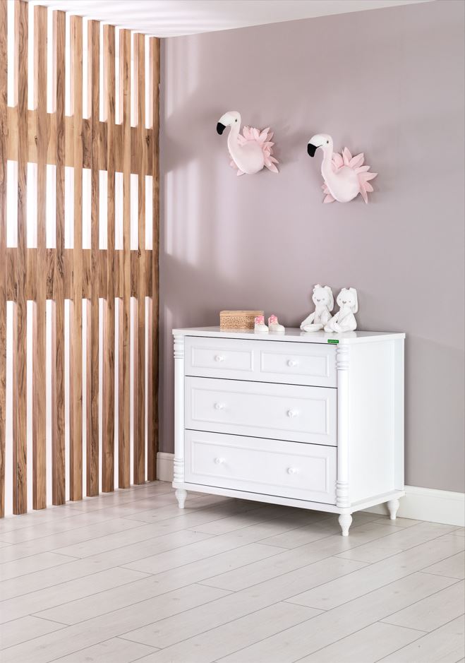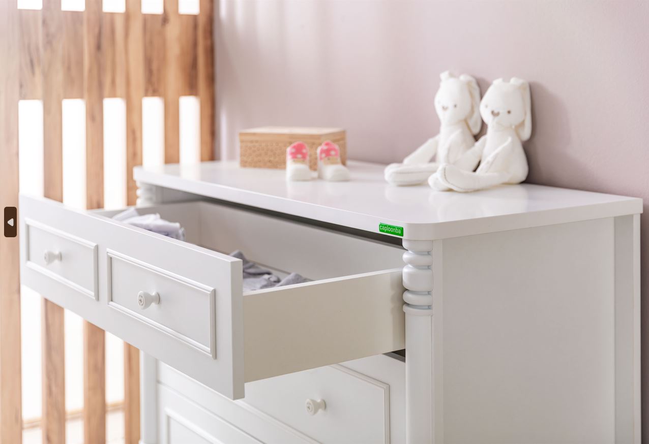 კომოდი “საბავშვო საძინებელი ოთახი ერგო ნილი” 3 უჯრით, აქვს დიდი სათავსოები და საკმარისად დიდი ადგილი ნივთების შესანახად.