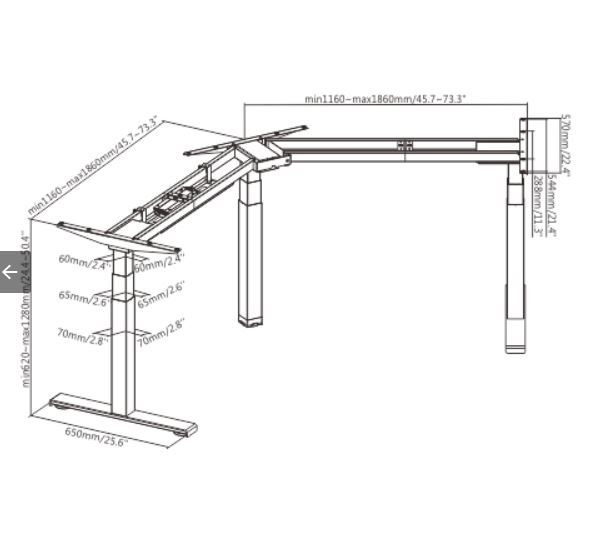 ● პროგრამირებადი სიმაღლის დიაპაზონი ადგენს მინიმალურ და მაქსიმალურ სიმაღლის პარამეტრებს თქვენს ირგვლივ არსებული ობიექტების გათვალისწინებით, როგორიცაა მაგიდის ტუმბო, ან კარადა.
