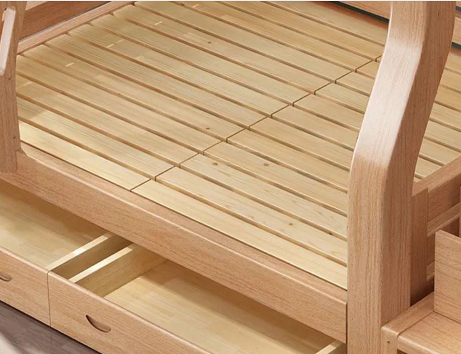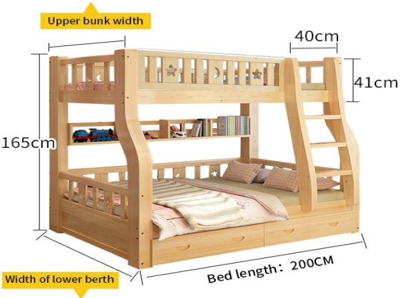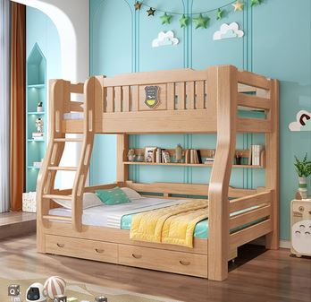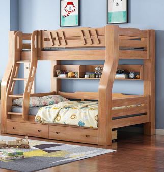 ორ სართულიანი საწოლი A1-1 ნატურალური ხე, ზედა 200*100 სმ, ქვედა 200*120 სმ, ხის ფერი
