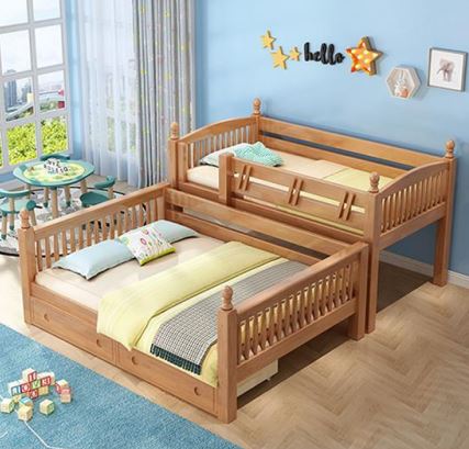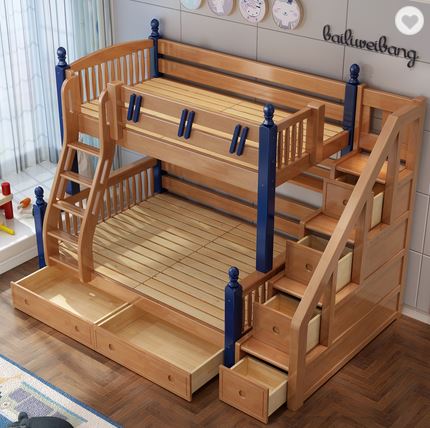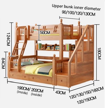 ორ სართულიანი საწოლი A4-2 ნატურალური ხე, ზედა 200*90 სმ, ქვედა 200*120 სმ, ხის ფერი