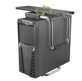 ეს მოწყობილობა გთავაზობთ აქამდე არნახულ, იდეალურ სივრცეს თქვენი პერსონალური კომპიუტერის განთავსებისთვის. აქსესუარი მყარად მონტაჟდება მაგიდის ზედაპირზე ქვედა მხრიდან და იკავებს აქამდე გამოუყენებელ სივრცეს. ნაცვლად მისი ძირზე განთავსებისა. შესაბამისად ფეხის არეალი სრულად თავისუფალია. მას აქვს მოძრავი, რეგულირებადი მექანიზმი, რისი დახმარებითაც იოლად არის შესაძლებელი პკ-ის ნებისმიერი სიმაღლით, სიგანით და მიმართულებით როტაცია, დაფიქსირება. ამავდროულად აქსესუარის 360 °-ით ბრუნვა აიოლებს პორტებთან და უკანა პანელთან წვდომას.