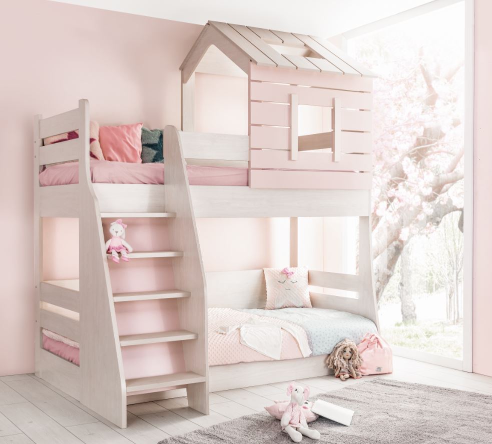 საწოლი ორსართულიანი სახურავით საბავშვო ოთახი ‘ერგო ვარდისფერი სახლი’ იძლევა ოთახის ეფექტურად გამოყენების შესაძლებლობას, ბავშვები სიამოვნებით იძინებენ, ისვენებენ და გამოიყენებენ აგრეთვე როგორც სათამაშო მოედანს.