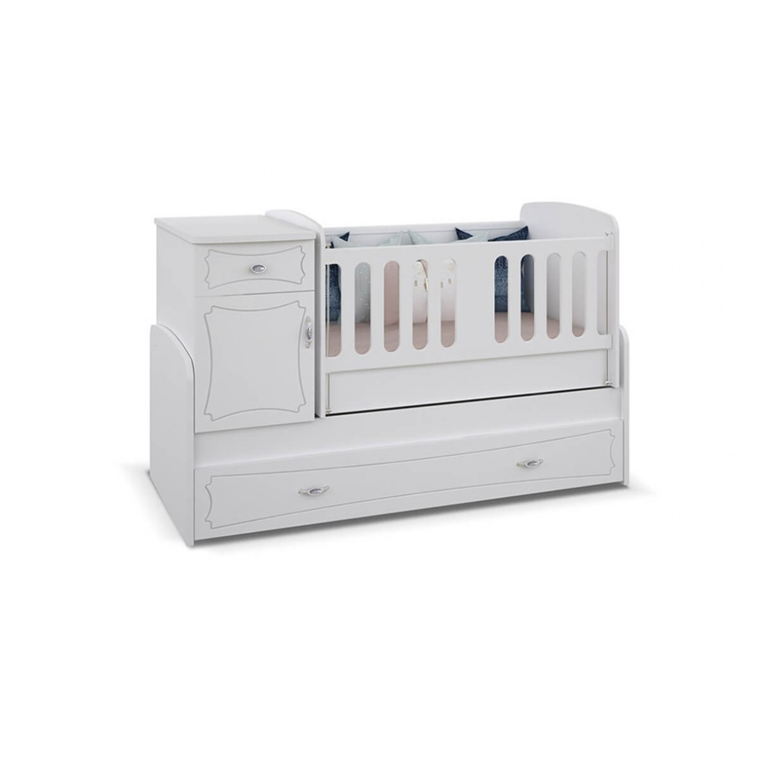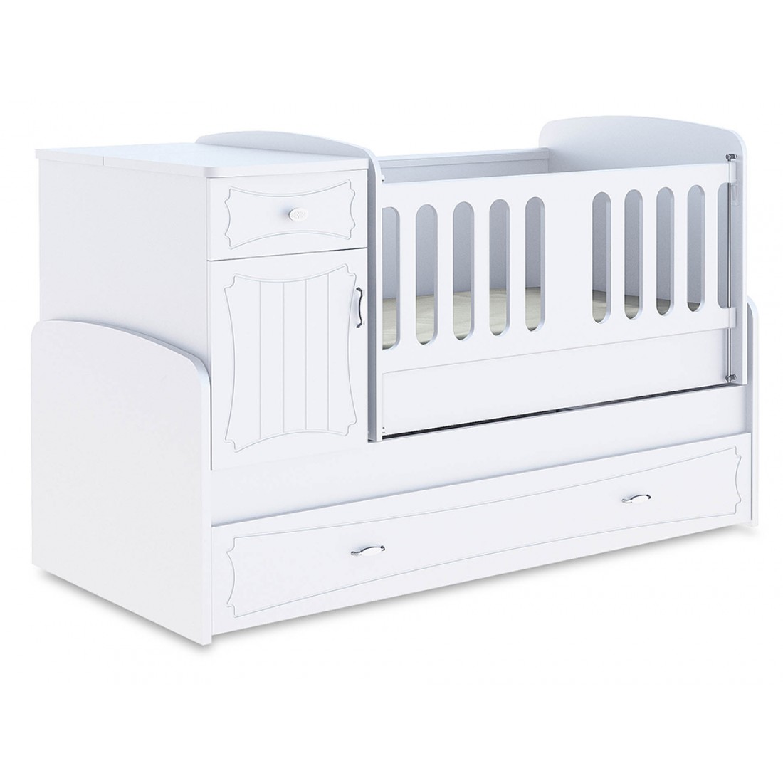 საბავშვო ოთახი ‘ერგო ელეგანსი’ ტრანსფორმირებადი საბავშვო საწოლს აქვს რწევის ფუნქცია;