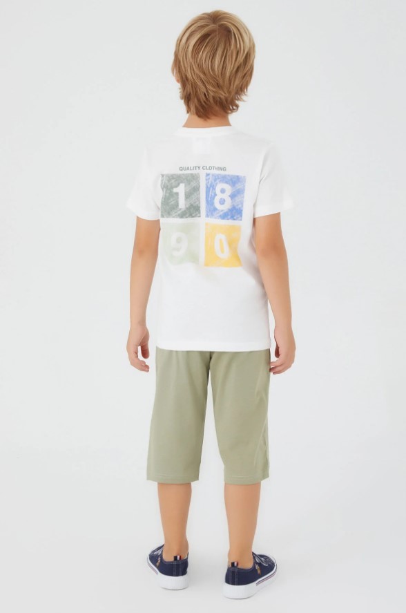 US POLO ASSN 1312 ბიჭების ორეული ნაკრები შედგება ორი ნაწილისგან. მას აქვს USPA-ს წარწერები ზედა მაისურზე. კაპრი არის სადა და ცოცხალი ფერის.