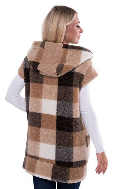 ჟილეტი კაპიუშონით NEW ფერი უჯრედული ყავისფერი ნატურალური შალი