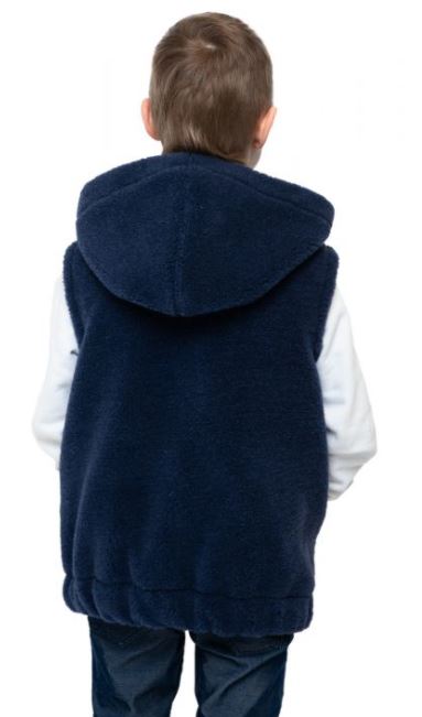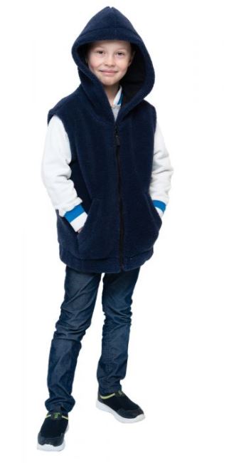 ჟილეტი საბავშვო კაპიუშონით NORD ფერი ინდიგო ლურჯი ნატურალური შალი