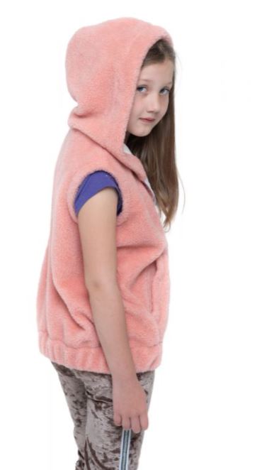 ჟილეტი საბავშვო კაპიუშონით NORD ფერი ორაგული ვარდისფერი ნატურალური შალი