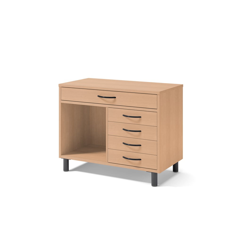 846 1F5B საოფისე კომოდი, აქვს ხუთი უჯრა და თავისუფალი სივრცე, სადაც განთავსდება ნებისმიერი ზომის და მოცულობის ნივთი.