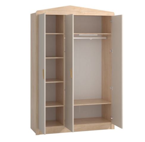 კარადა საბავშვო ოთახი ‘ერგო ჩემი სახლი’ 3-კარიანი კარადა, შედგება თაროებისგან მარცხნივ და საკიდებისგან მარჯვნივ, აქვს დიდი სათავსოები და იპყრობს ყურადღებას მისი შიდა განათებით.