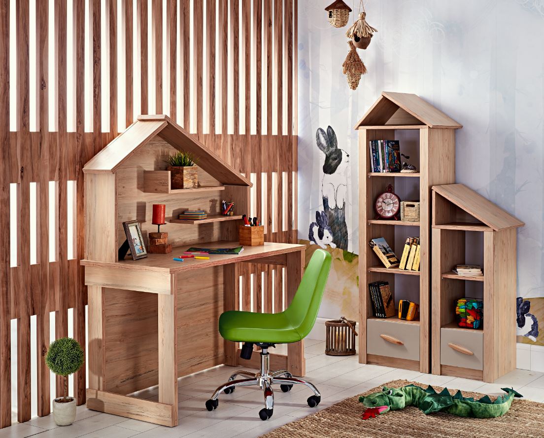 სამუშაო გარემო უნდა იყოს შექმნილი ბავშვების ინტერესებისა და შესაძლებლობების შესაბამისად. სამუშაო მაგიდა „საბავშვო ოთახი ერგო ჩემი სახლი“ თავისი ბუნებრივი იერითა და სახალისო დიზაინით კარგად ჯდება ოთახის.