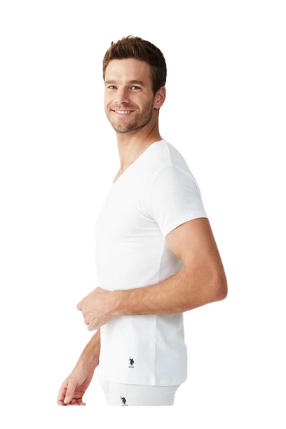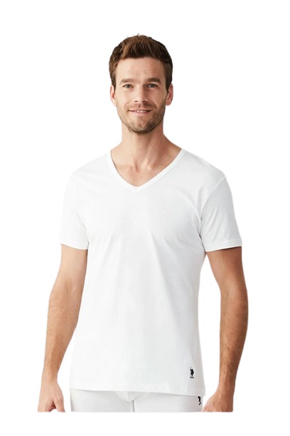 U.S. Polo Assn. 90001 კაცის V მაისური მოკლე მკლავით XTRA ზომა 2 ცალი (თეთრი)