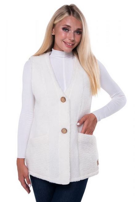 ჟილეტი ‘ოფის ლაითი’ ნატურალური შალი ვანილი თეთრი