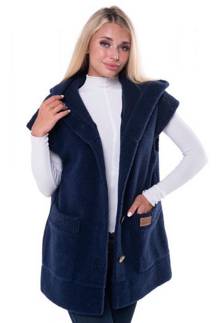 ჟილეტი კაპიუშონით NEW ფერი ინდიგო ლურჯი ნატურალური შალი